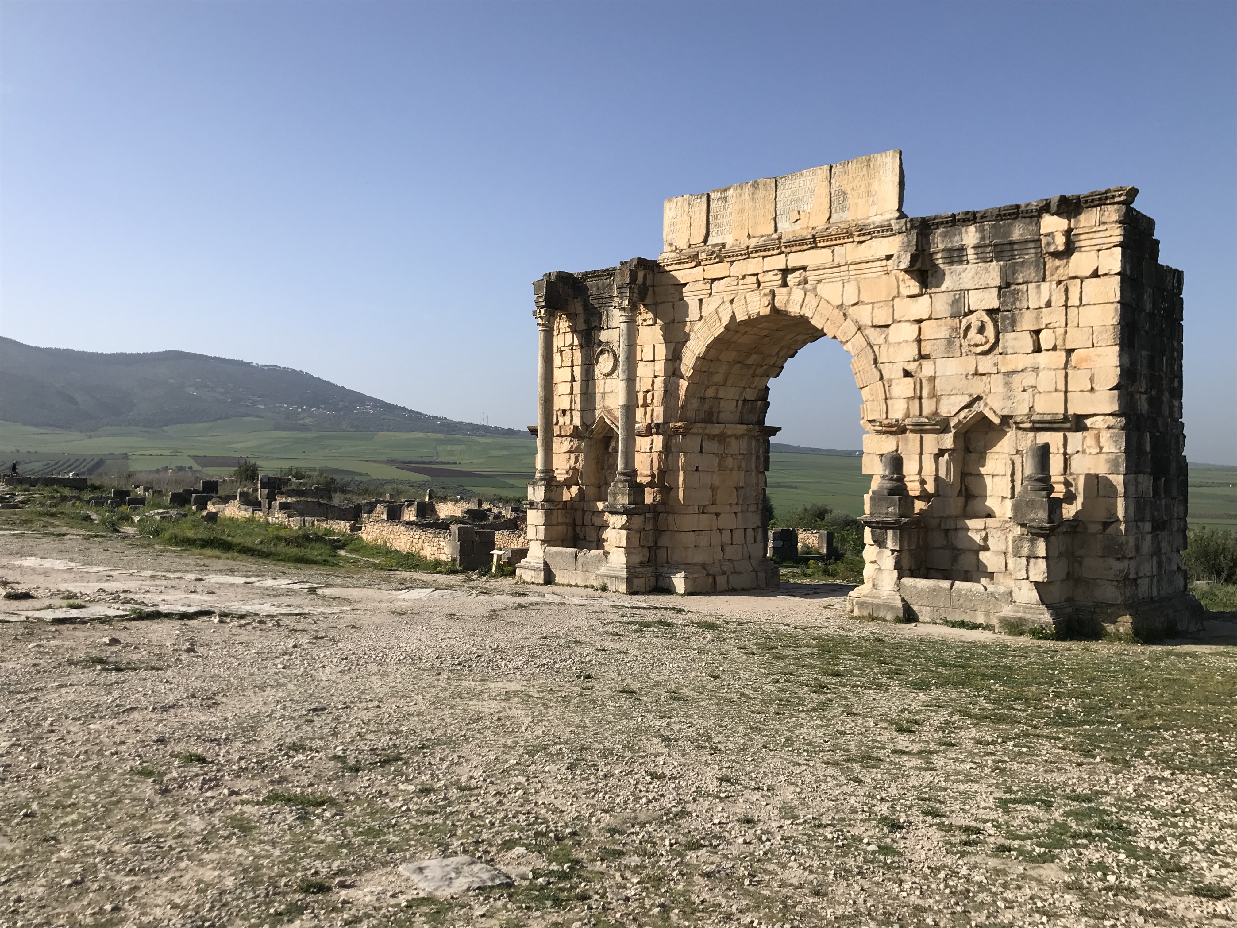 Leaving Rabat we drove on to Meknes and Volubilis, a UNESCO World Heritage Site. After a short visit to Meknes (for a short time it was the Royal City), we continued on to Volubilis, the sight of some Roman ruins, to spend the night. We found a hotel just down the road from the ruins, the Hotel Volubilis Inn. We walked in and asked if they had a room. They did. “How much?” we asked. After some consideration, the man behind the desk quoted 600 Durhams (about 55 Euros/$62). We took it without bargaining. According to our travel guide, the hotel was comfortable but had seen it’s better days. We can confirm that. The stay wasn’t bad, except for the lack of hot water in the room. But it was overpriced for what they offered. I believe we were the only guests in the hotel. When I checked out I mentioned the lack of hot water and they gave us a discount.