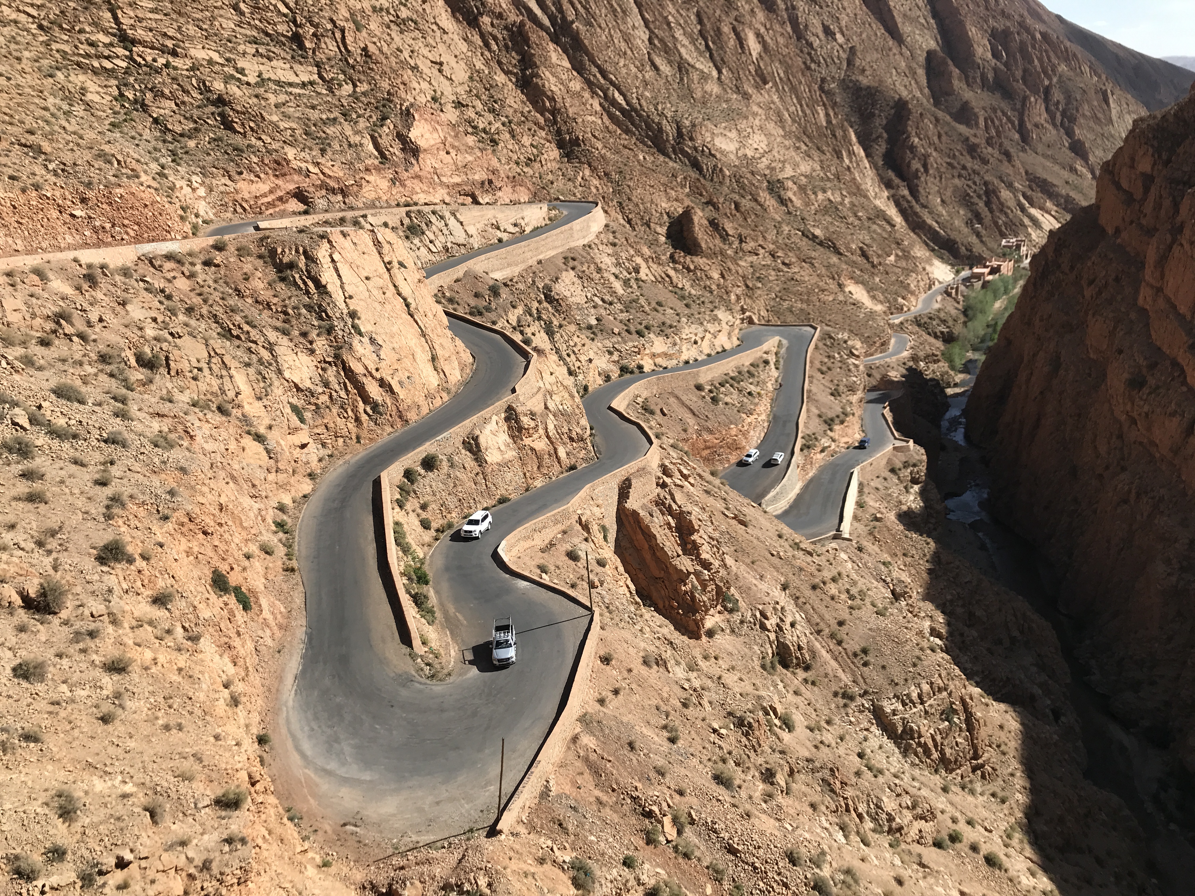 There is a well-photographed road in Dades, I would even say it is the iconic road leading into the gorge. do a search on Dades Gorge and you will find this road. So, of course, we had to stop for a photo. There is a hotel from which most of the pictures are taken. We considered staying here but the thought of sleeping on a cliff face was not a comforting one, plus the room was a bit sparse.