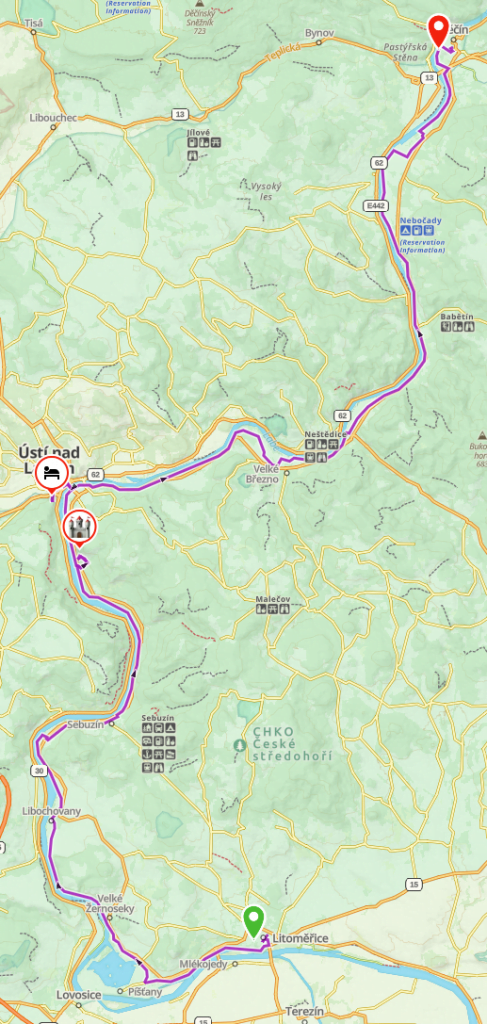Our last night in the Czech Republic was in Děčín, at the confluence of the Elbe and Ploucnice rivers. It also lies at the transition to the Bohemian Switzerland, the Czech designation for the Elbe Sandstone Mountains.