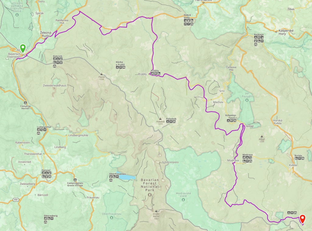 Unlike all our previous trips, this time we decided to play loose and fast. We didn’t reserve any hotels before we left Frankfurt, with the exception of Bayerisch Eisenstein, our starting point. After that we had a general target for each day, but we wanted the flexibility to stop sooner, or later, depending on the terrain, the sightseeing, and how we were feeling. That being said, what Kathrin planned per day turned out to be accurate, so we didn’t have any surprises, with one exception: Slapy, that wasa ghost town (more in that story later.)