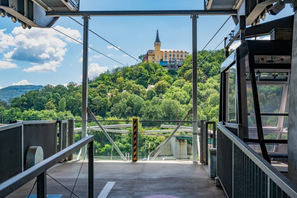 Our next stop was another castle, in a town called Usti, that Kathrin found in the guidebook. We arrived in town and after a bit of wandering around, found the entrance to the cable car that takes visitors to the castle. To our great disappointment this place was just a hotel, modeled to look like a castle. We were so disappointed that we took the next cable car down.