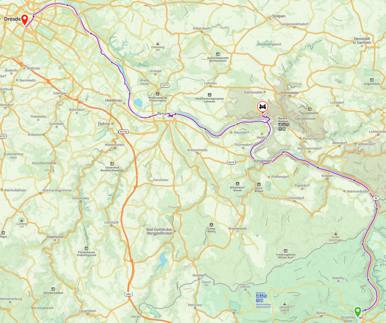 Our last night in the Czech Republic was in Děčín, at the confluence of the Elbe and Ploucnice rivers. It also lies at the transition to the Bohemian Switzerland, the Czech designation for the Elbe Sandstone Mountains.