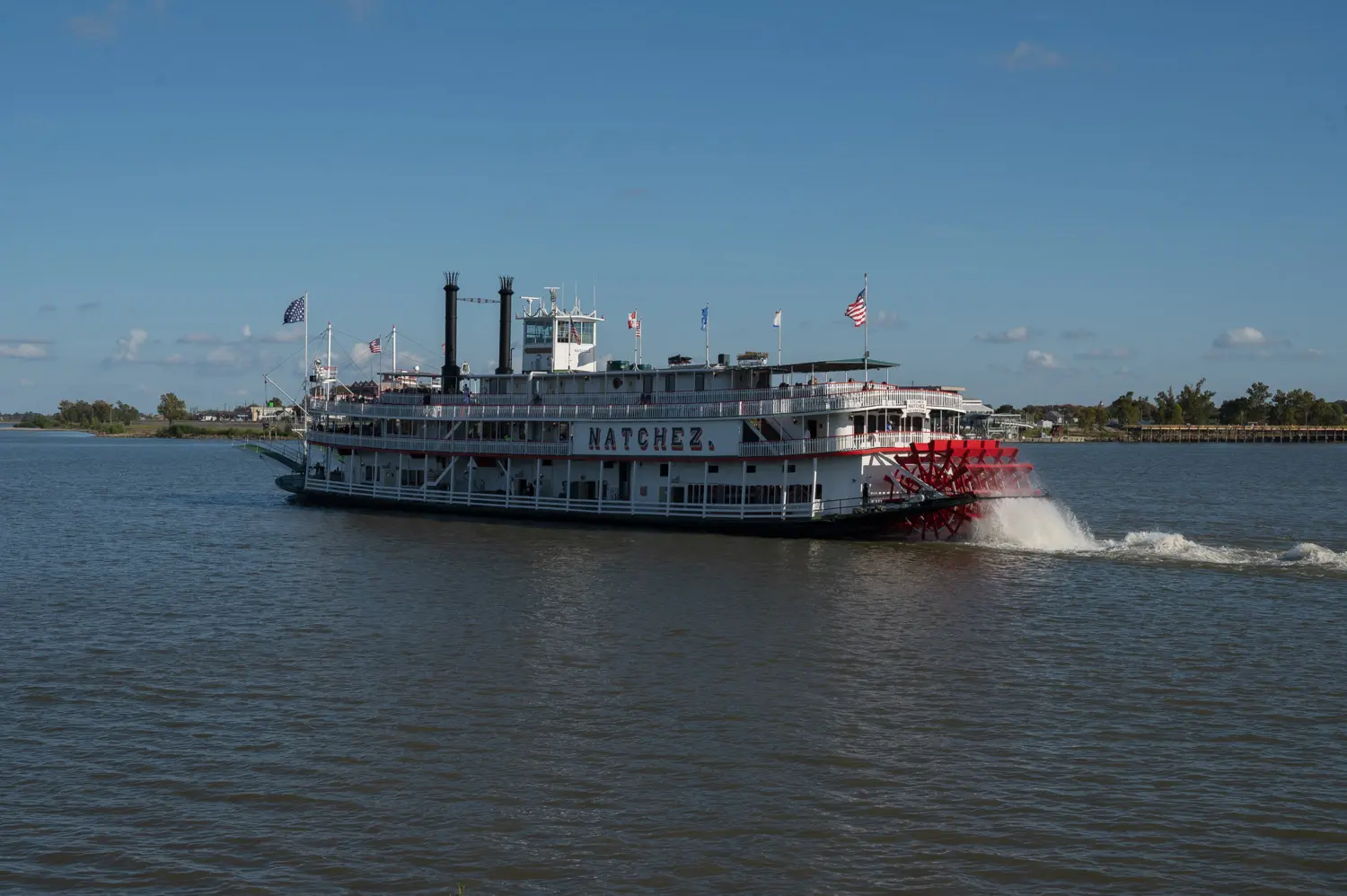 We made it back to New Orleans a little after 5pm. After a picnic dinner on the Riverwalk, we set off for the ferry, which is part of the public transportation system and included in the 3-day tickets we purchased on day 1 of our trip. We took the next available ferry, admiring the views, and then took the next one back. For us, it served as a sightseeing river ride, offering a magnificent view of the bridge and cityscape.