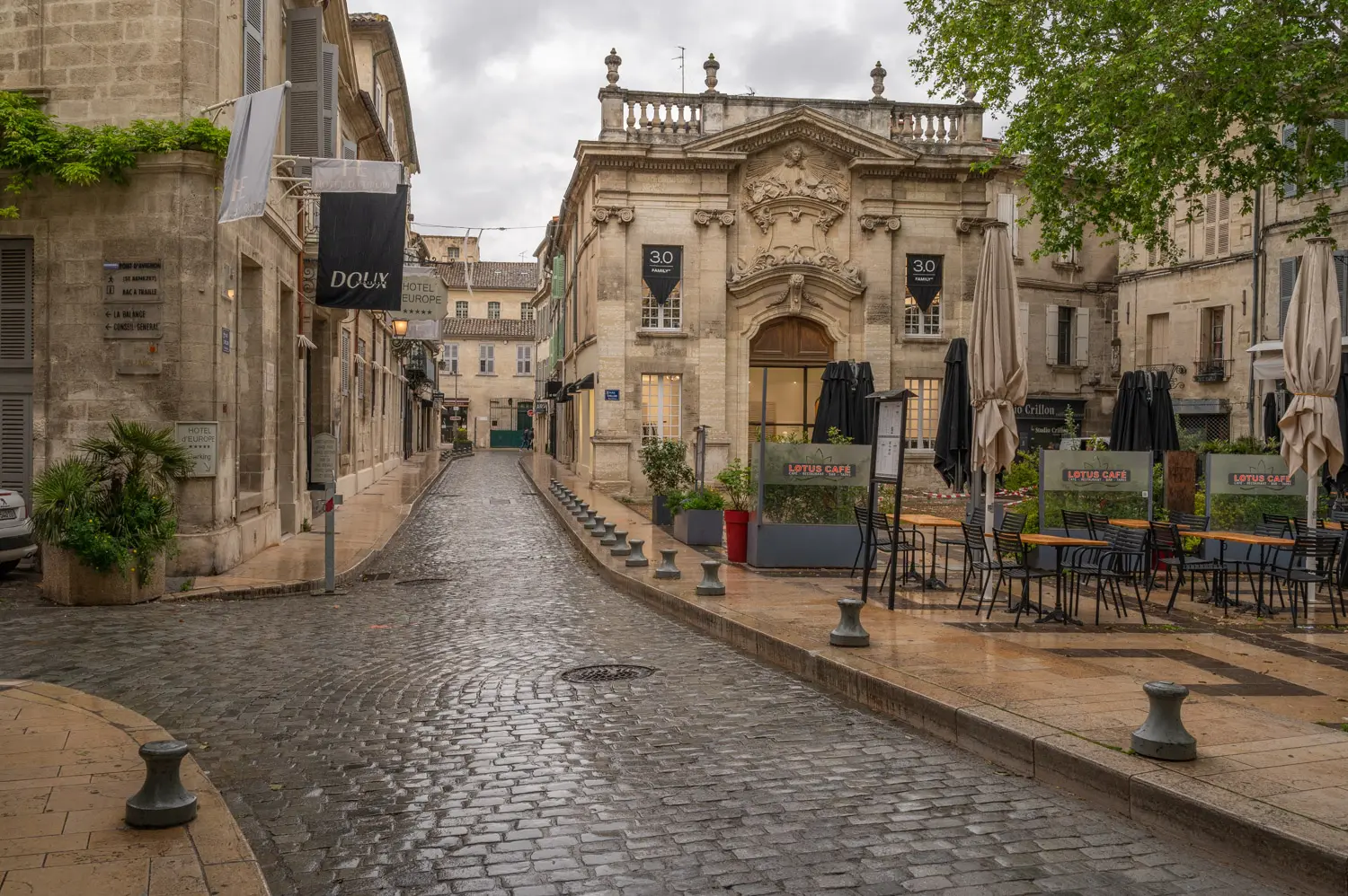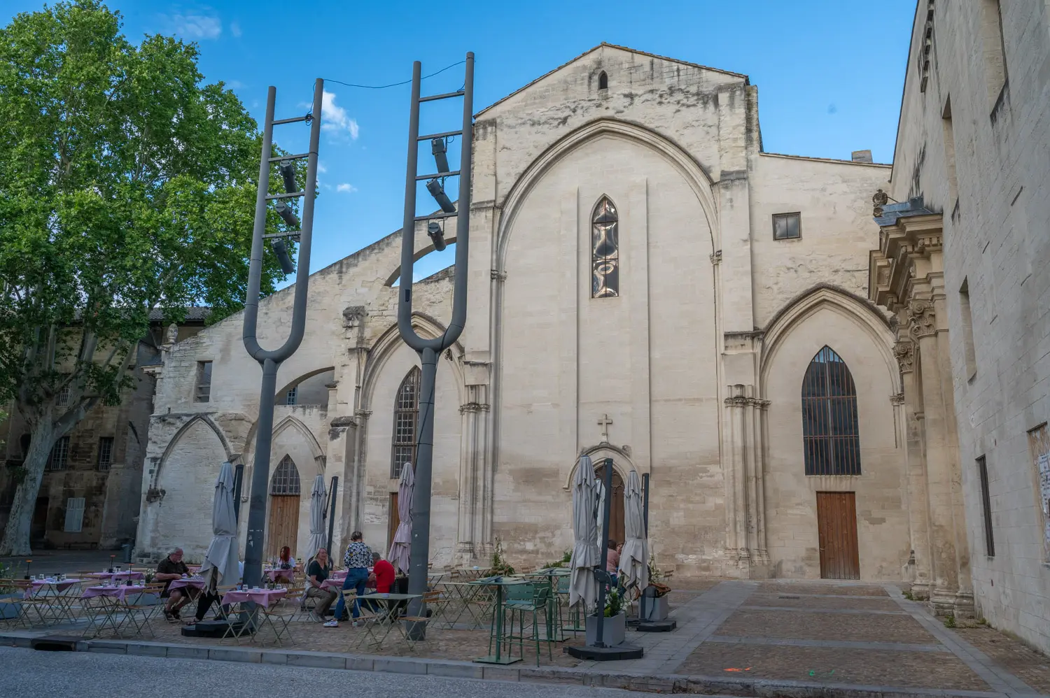 For our second stay in this town, I booked a charming hotel tucked away on a quiet side street in the historic heart of town. Its location promised tranquility, yet it placed us just steps from the city’s storied past. Keeping the local meal schedule in mind, we retraced our steps to the touristy district we’d discovered during our first visit. Dinner wasn’t exactly a showcase of French culinary mastery, but it was satisfying enough. Later, during my evening photowalk, I stumbled upon a fascinating connection to history—our hotel was just around the corner from the Place de Corps Saints, once a paupers’ cemetery and the final resting place of Cardinal Pierre du Luxembourg. A short stroll in the other direction revealed a peaceful park centered around a 14th-century church, an oasis perfect for reflection and respite.