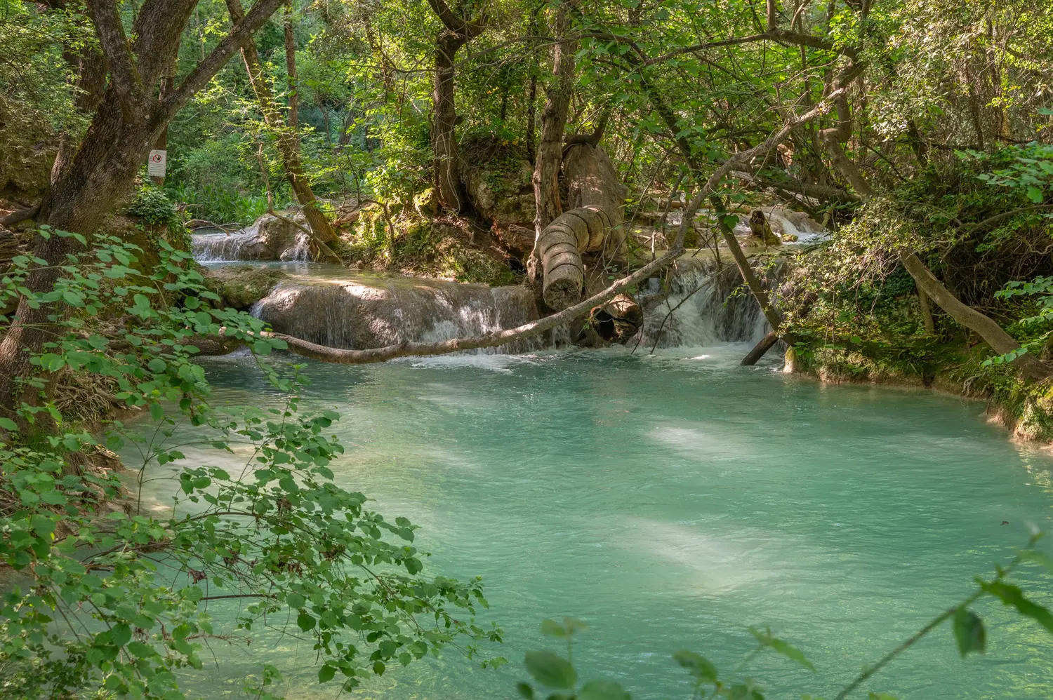 With everything settled, we set off to see the town’s main attraction—the cascades. We followed a path leading close to the taller falls, which ended at a small blue pond fed by smaller cascades. It was a scenic spot, though not particularly breathtaking. We decided to head back to the park entrance and try the other path. Along the way, we stopped at our room to pick up our picnic dinner, hoping to find a nice bench in the park.