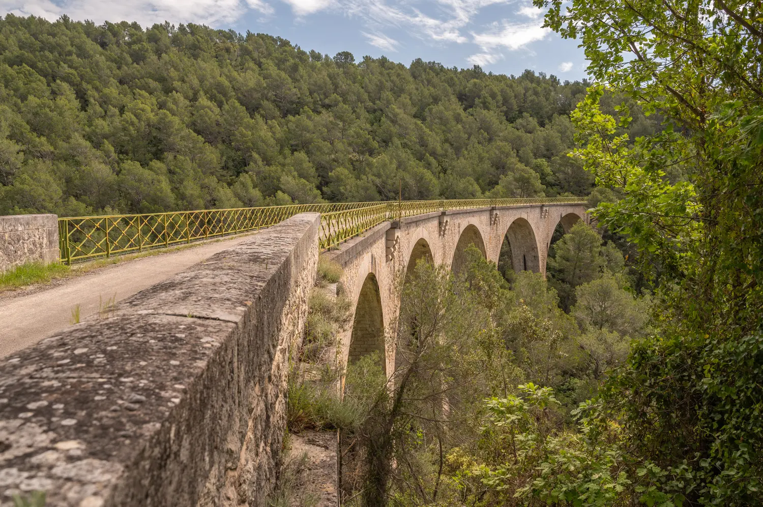 The route presented its share of challenges. It was hilly, with some steep climbs. At one point, we encountered a road closure, so we simply lifted our bikes over the barrier and rode the 100 meters to the other side. There was an empty construction area along the way, but luckily it posed no trouble for us to pass. By mid-morning, we reached the Rayol viaduct, which Kathrin had marked on the map during her planning. It was well worth the stop.