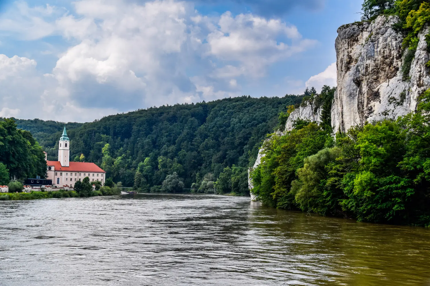 While in Kelheim we went on a river cruise through the Danube Gorge. The gorge has been declared an EU “national park” of sorts and has 300 foot cliffs, a small former abbey, and a pirate cave. The Danube river is at its narrowest through the gorge. Once through you can see the famous Weltenburg Kloster (or Abbey).