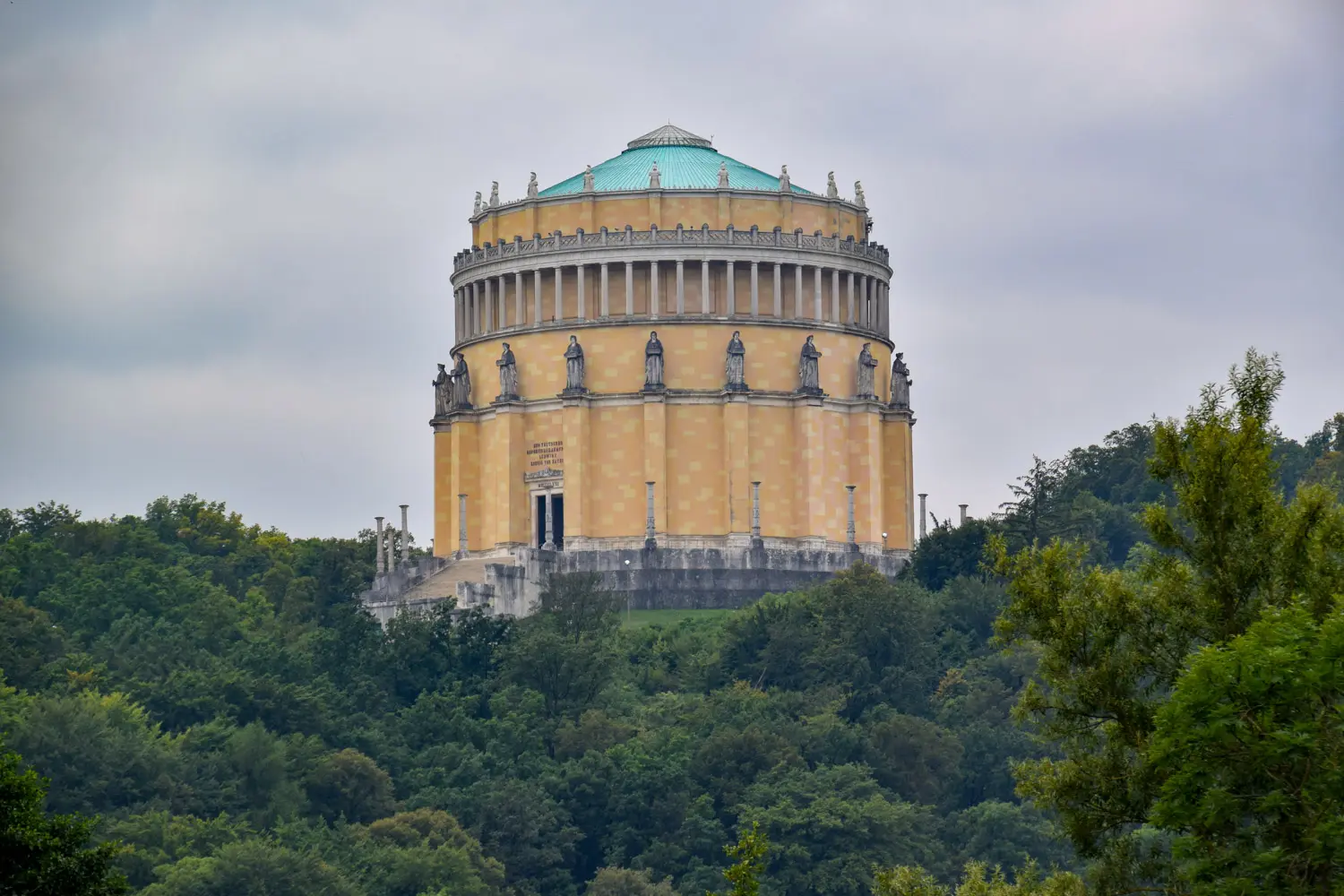 Kelheim was both interesting and funny. Interesting in that the Befeiungshalle (“Liberation Hall” sitting on the hill) built by King Ludwig 1 to commemorate the defeat of Napolean in the Wars of Liberation (1813 – 1815). Funny in that while looking for a geocache we stumbled upon a brewery that brews the favorite beer of a colleague of mine. He made a pilgramige to this