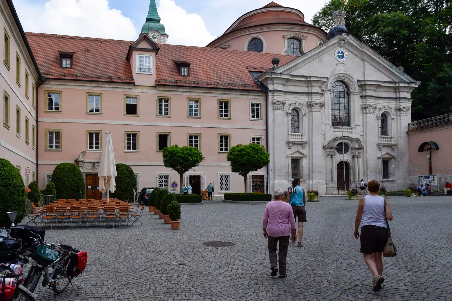 The monks in Weltenburg Abbey have been brewing beer for centuries, helping to sway the minds and souls of the local population. The abbey was founded around 600 AD by the monks of St. Columbanus. The church and existing buildings were built between 1716 and 1751. In the chapel is a painting of St. Mary arriving on the American continent with waiting Indians.